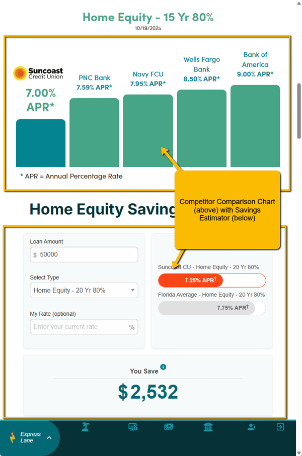 - Combo Chart & Estimator for Loans - Displays both the Competitive Comparison Chart and the Savings Estimator Widget together in one unified user experience.