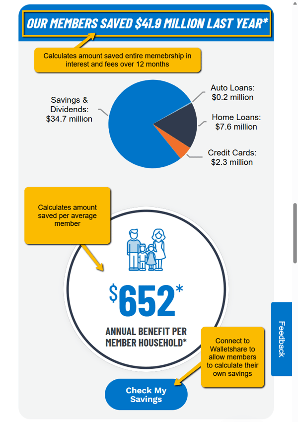 - Member Benefit Software - Computes and illustrates how much your credit union saved your entire membership in interest and fees over the last year compared to the competition.