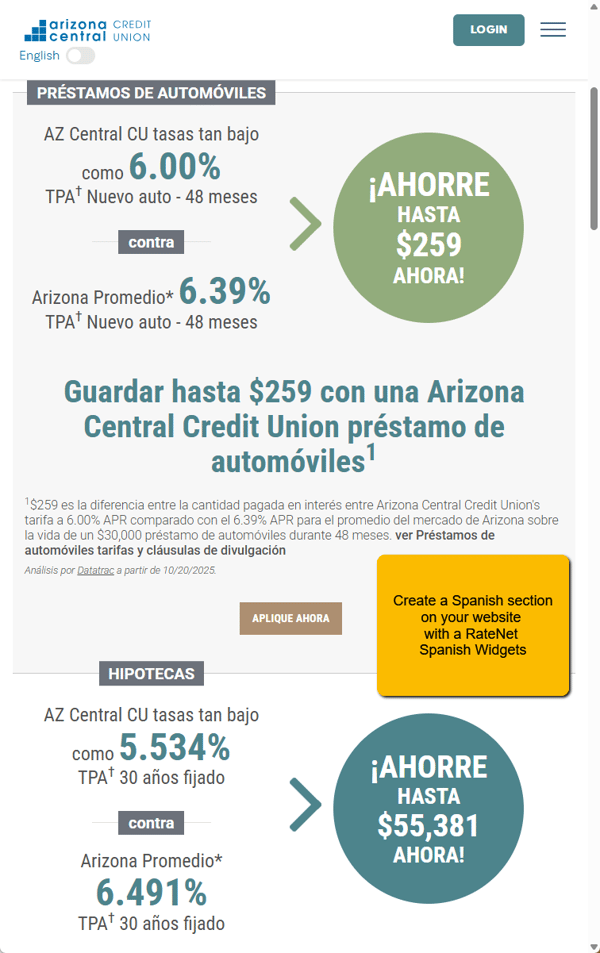 The Spanish Competitive Comparison Page is a page on your website that welcomes Spanish speaking visitors to see how much more they can save on your loans or earn on your deposits.
